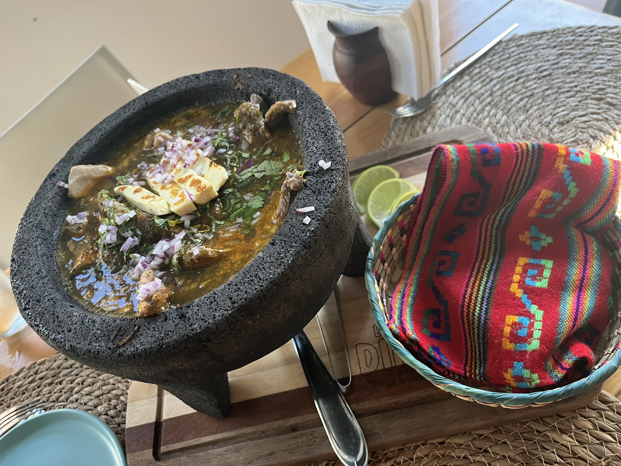 My husband and I shared a Molcajetes, of the farm.  It was served in a big volcano rock pot, piping hot.  It was like a meat soup, super delicious.  It came with homemade corn tortillas.   We had enough leftovers for another meal.  We actually kept the sauce and ate it with black beans.  I will most definitely be back.